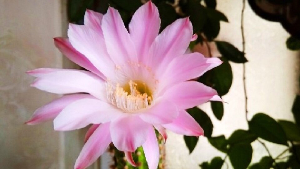 Это видео из серии «Мои комнатные цветы». Зацвёл мой любимый кактус Эхинопсис. Цветение кактуса всего сутки. Появился этот кактус у меня 25 лет назад. Цвести мой кактус начал 15 лет назад после одного экстремального случая. С тех пор он цвёл один раз в год по 1-3 цветка за лето. Только в 2012 году у кактуса было 7 цветов за лето. Расцветал кактус всегда в ночь. А к обеду следующего дня цветы уже увядали В этом году цветонос у кактуса появился вначале июня. 10 дней он рос очень медленно. И в таком положении он был целый месяц. Затем я подкормила его удобрением для роста цветов. И вот в ночь с 21 на 22 июля цветок расцвёл. Я делала видео поздно вечером при освещении лампочек. Для съемки специально занесла кактус в комнату. И в этот раз кактус цвёл сутки. Запах у кактуса чудесный, особенно ночью. Лепестки цветов очень нежные бледно розово-сиреневого цвета. Ножка у цветка в этот раз была до 17 см, а сам цветок до 10 см. Полюбуйтесь вместе со мной этой красотой. Приятного просмотра и до