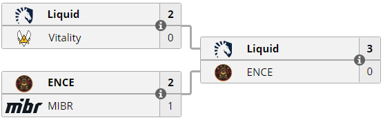 IEM Chicago 2019 прошел 18-21 июля на площадке United Center в Чикаго, США. Соревнование за призовой фонд $250,000 началось с группового этапа в формате Double Elimination (GSL) BO3, четверка финалистов которого столкнулась в сетке Single Elimination BO3+BO5.Liquid попали в одну группу с MiBR, G2 и Envy, в которой уверенно расправились со своими соперниками и заняли первое место. Помимо будущего чемпиона в следующий этап отобрались ENCE, MiBR и Vitality. В полуфинале стадии плей-офф Liquid обыграли Vitality, а в решающем BO5-противостоянии всухую расправились с ENCE. Североамериканский коллектив записывает на свой счет очередной чемпионский титул и забирает денежное вознаграждение $125,000 за первое место. Распределение призового фонда: 1. Liquid – $125,000 2. ENCE – $50,000 3-4. Vitality – $25,000 3-4. MiBR – $25,000 5-6. G2 – $8,500 5-6. Heroic – $8,500 7-8. Envy – $4,000 7-8. Renegades – $4,000