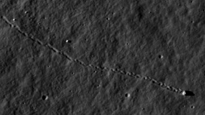 Перед вами фотография лунной поверхности: Все бы ничего, вот только на ней явно видны следы и то, что их оставило - простой камень. Это явление было обнаружено еще до высадки человека на Луну и оно взбудоражило умы ученых. Гипотез было множество, вплоть до того, что это некая форма жизни. Конечно, ничего живого на Луне нет, однако камни продолжают упорно двигаться и не только маленькие, но и здоровенные валуны. Увы, но разгадка оказалась просто и довольно скучной - во всем виноваты земле- лунотрясения, сила которых может достигать 5,5 баллов. Причем на Луне они происходят намного чаще, чем на Земле. Вызваны они могут быть приливными силами Земли, тектонической активностью, падением метеоритов и перепадами температур. Вибрация поверхности спутника, вызванная вышеназванными причинами, и заставляет камни перемещаться. Причем на некоторых фото видно, что они не просто "ползут", а, буквально, перемещаются прыжками, оставляя за собой прерывистый след. Вы могли подумать, что двигающиеся