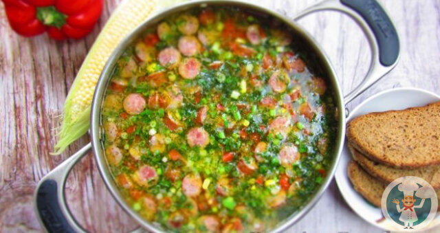 Всем привет! Снова для Вас приготовили интересный рецепт по силам приготовить любому человеку без особых навыков и самое главное это займет не больше 30 минут. Не верите? Вот Вам рецепт шикарного и самое главное вкусного супчика с охотничьими сосисками, свежей кукурузой и болгарским перцем. Проблем с продуктами не будет, на рынке полно сейчас этого. Не будем терять время и приступим в готовке. Продукты: ►Сосиски охотничьи - 4 шт.
