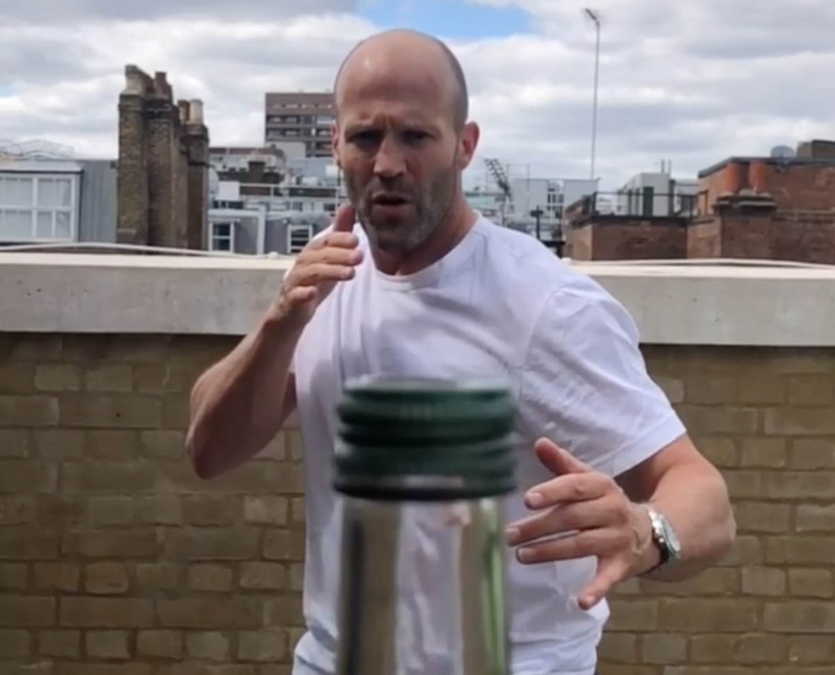 bottle cap challenge.ДЖЕЙСОН СТЕТХЕМ и КОННОР МАК-ГРЕГОР открывают бутылку ударом ноги.