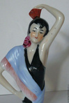 Стильная фарфоровая кукла-половинка изготовлена в Германии в 1920-х-1930-х годах мануфактурой FASOLD & STAUCH. Куколка изображает элегантную испанскую леди, одетую в типичном андалузском стиле: цветная шаль, черный топ с большим цветком розы на корсаже у плеча. В коротко стриженные волосы у неё воткнут красный гребень мантильи. Имеет серийный номер и маркировку "Foreign", так как эта модель отправлялась в Англию. Очень красивая редкая коллекционная Half doll "Madame De Pont". Куколка представлена в образе девушки в национальном костюме французской провинции Эльзас. Костюм состоит из юбки, жилетки, рубахи, передника и чепца. На груди повязывается платок. Костюмы различаются в зависимости от религиозной принадлежности. Католички носят только красные юбки с чёрным жилетом, протестантки - юбки зелёные, синие или фиолетовые с чёрной бархатной лентой по подолу. Жилет глубоко вырезан. К праздничному костюму надевается богато вышитый передник из шёлка или же из пёстрой печатной ткани. Плат