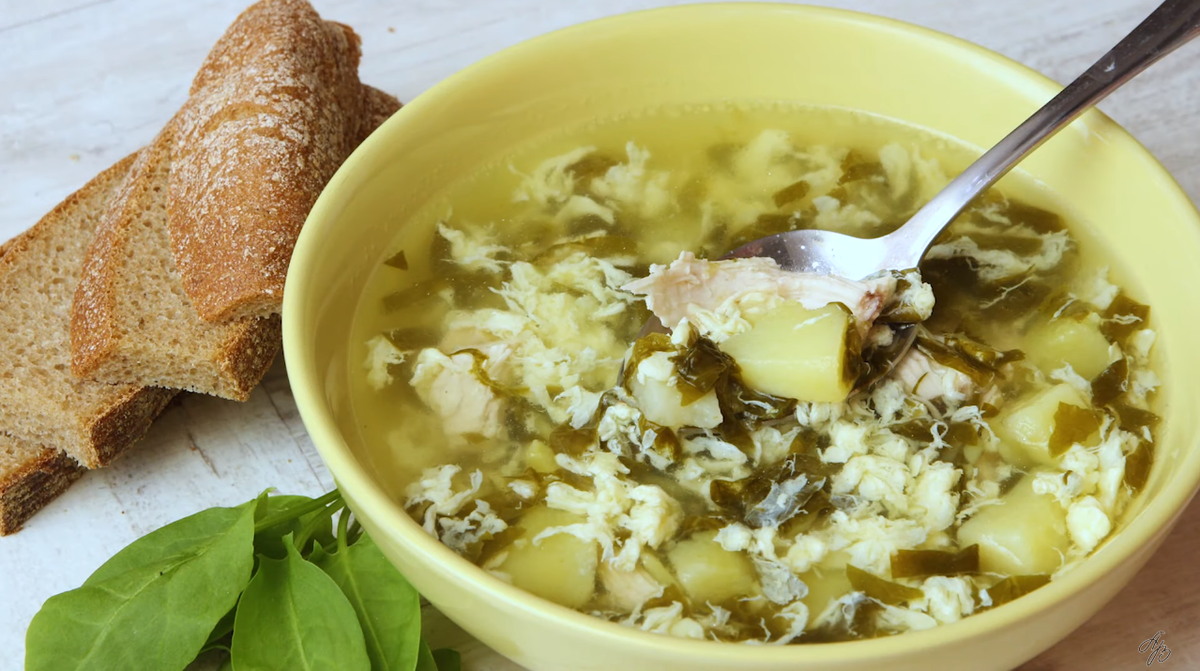 Сегодня расскажем о том, как приготовить очень легкий летний суп с щавелем, просто, вкусно и полезно. Для приготовления возьмите щавель или, как говорят в народе, «кисляку», куриную грудку, куриные яйца, картофель, соль, перец по вкусу. Из куриной грудки сварите бульон. Для того, чтобы он быстрее сварился, грудку нужно разделить на части. После варки само мясо достаньте, остудите и разберите на волокна. Картофель нарежьте небольшими кубиками, а «кислятку» порежьте полосками. В кипящий готовый куриный бульон добавьте картофель и варите суп минут пять. В это время сделайте из яиц «болтунью». За несколько минут до готовности супа опустите щавель и влейте тонкой струйкой яичную массу. В готовый суп добавьте куриное филе, любимые приправы, соль, перец по вкусу. Супчик готов. Несмотря на его простоту приготовления он получается довольно необычным, вкусным и, конечно же, сытным. Желаю вам приятного аппетита и отличного настроения. Не забудьте подписаться на мой канал.