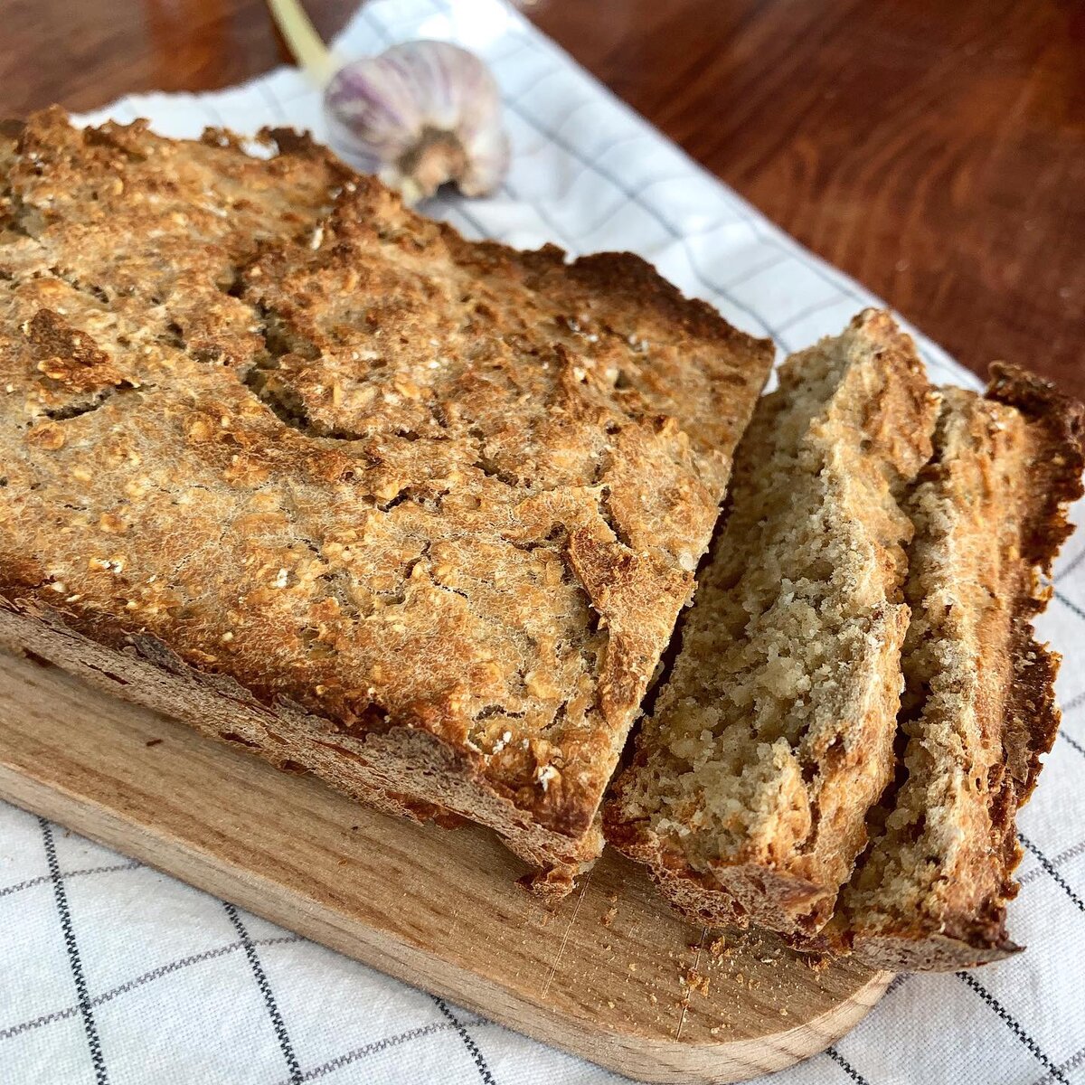 Найти в магазине цельнозерновой хлеб мне не удалось🤷♀️ К тому же везде добавляют сахар и дрожжи😔 Решила я попробовать испечь полезный хлебушек сама и осталась довольна! Оставлю рецепт здесь, а вы если приготовите отмечайте меня😉 Ингредиенты: 1 стакан цельнозерновой муки 1 стакан овсяных хлопьев Чайная ложка разрыхлителя Стакан тёплой воды Чайная ложка мёда Столовая ложка растительного масла Первые три ингредиента смешиваем в одной миске, остальные три в другой Затем объединяем снова перемешиваем и в форму Духовку разогреваем до 200 градусов и ставим тесто на 30 мин! По вкусу можно добавить соль, приправы, семечки, кунжут, орехи... Получается хрустящий и полезный хлеб😉