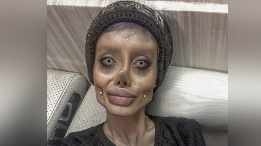В Интернете разгорелись споры о женщине, которая, по сообщениям, имела 50 процедур пластической хирургии, чтобы выглядеть как Анджелина Джоли, но вместо этого вышла в виде «трупной невесты». Отдел проверки RT обнаружил, что изображения, скорее всего, подделаны. История иранской женщины Сахар Табар РАЗЛЕТЕЛАСЬ по Интернету на этой неделе, она перенесла «50» пластических операций, чтобы выглядеть как Джоли. Это также сказало, что она потеряла 40 кг (88 фунтов) в попытке достигнуть стройной фигуры Джоли. Фотографии, опубликованные в Instagram-аккаунте Табара, быстро распространились, и критики утверждают, что она больше похожа на «зомби» и «невесту-труп», чем на отчужденного партнера Брэда Питта. Другой человек назвал ее "упырем", в то время как другие критики назвали ее "глупой" и "страшной". Комментируя ее чрезвычайно худое телосложение, один человек умолял ее «пожалуйста, ешьте». Но на самом деле изображения кажутся поддельными - по крайней мере, частично. Отдел проверки RT изучил эт