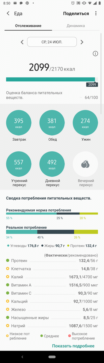 Крайне тяжелый день выдался. Все время хотелось есть и не просто есть, а торт. Т-О-Р-Т! Так себе и не позволил. Бутер с рыбой. Продолжение Рыбу есть надо. Она вкусная и полезная. Но бутер с рыбой, как вы помните, сомнительное решение. Поэтому сегодня я развил эту тему и сделал бутер с рыбой на хлебцах (такие, маленькие, тоненькие). И в целом очень даже ничего. Хлеба оказалось меньше (по сравнению с обычным), может даже в нём меньше углеводов. Конкретно я использовал “Хлебцы Бородинские Цельнозерновые”. 5 таких штук обойдутся в 20 г. углеводов. Не много, согласитесь. Конечно 5-ю такими бутербродами я не наелся, но это и не было единственным блюдом. В общем продукт зачтен и рекомендован к употреблению в ограниченных количествах. :) Данные о моём потреблении за этот день представлены ниже. Результат По белкам все так же не удаётся быстро подняться до необходимой нормы. Надо искать различные протеиновые продукты и есть их больше. У меня такими продуктами являются: творог, рыба, мясо. Не в