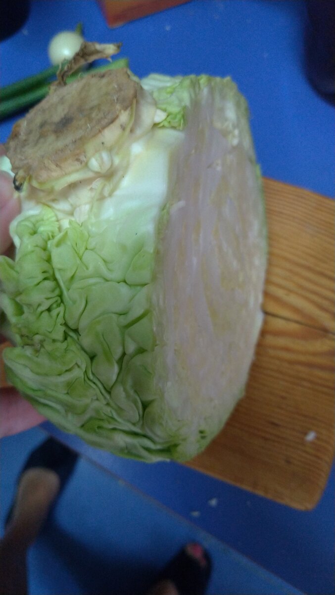 Порой то, что кажется обыденным, становится открытием. Салат из капусты. Казалось бы - что может быть проще? Каждый раз когда к нам в гости приходила семья соседей, муж соседки просил приготовить салат из тонкой капусты. Супруга - отменная хозяйка и отличный кулинар всегда ревностно относилась к восхищённому поеданию элементарного салата. А когда мы приходили в гости - говорил, что у жены так не получается. Думаю, что надо поделиться нехитрым способом шинкования капусты. А вдруг для кого-то "открою Америку" Вилок капусты режем пополам. Можно по кочерыжке. И в таком положении начинаем шинковать капусту "против шерсти". Получается как тонкая стружка. И для примера другой вариант нарезки Капуста на доске срезом вниз. При такой же толщине нарезки ломтики совсем другой формы. И если при засолке лучше порезать крупнее, то салат из "тонкой" капусты Как говорится: "Почувствуй разницу" Ну а вариантов приготовления салатов из капусты великое множество. А у меня сегодня "постный" салат с салатно