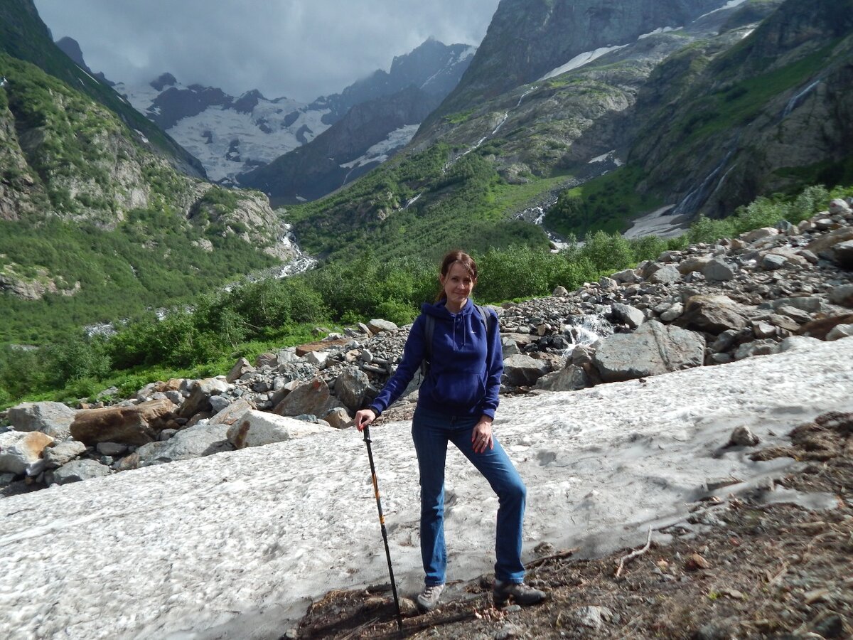 Над нами возвышались горы великаны свыше 2500 метров. Облака по очереди прикрывали их вершины, изредка балуя нас солнечными лучами. ⠀ Второй раз в жизни я в таких мощных горах (первый раз был Алтай). Я шла и думала, вот это красота! Но что же ждёт нас впереди?! Тут рассчитывать нужно только на себя, ведь это горы. ⠀ Себе мы представляли более лёгкий и менее живописный путь. Тропинка вела то вверх, то вниз по пути подкладывая огромные камни, реки которые нужно чуть ли не в брод переходить держась за специальную верёвку чтобы не свалиться. Ещё нужно быть готовым преодолеть расщелину в горе, благо там стояли деревянные лестницы. Дойдя до огромного снежного куска необходимо удержаться и не укатиться вниз. ⠀ Чем ближе были водопады, тем темнее становилось небо. Тяжёлые капли начали с легкостью впитываться в одежду. Но мы это предвидели. Мгновение и дождевики уже на нас. ⠀ Ветер, сыро, скользко. Кроссовки предназначенные для летних однодневных походов стали тяжелее от холодных капель дож