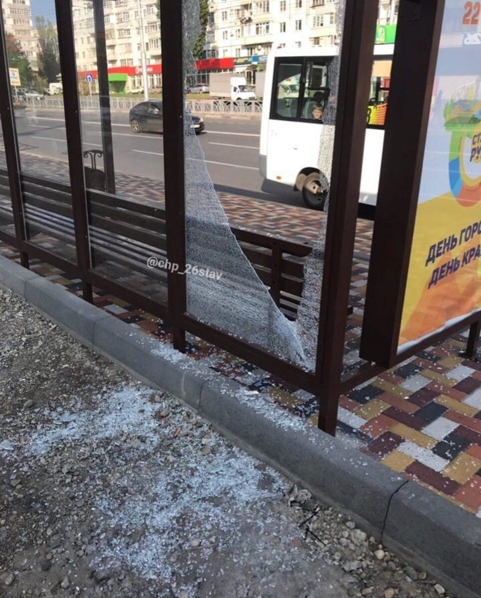 Полицейские Ставрополя задержали мужчину, разбившего автобусную остановку