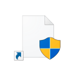 Как убрать щит с ярлыка Windows При создании ярлыка в Windows 10, 8.1 или Windows, для программы, которая требует прав администратора, такой ярлык будет содержать значок со желто-синим щитом в правом нижнем углу. Многим пользователям такой вид значка не по душе, и отсюда желание убрать щит с ярлыков, что вполне осуществимо. В этой инструкции подробно о двух способах убрать щиты с ярлыков Windows и, кратко, еще об одном. Самый простой, быстрый и никоим образом не затрагивающий работу и свойства системы или самой программы — первый способ, второй также безопасен, а третий вариант не очень желателен. Как убрать щиты с ярлыков, используя их свойства Для начинающих пользователей рекомендую именно этот метод, так как вероятность что-то испортить с его помощью практически отсутствует. Шаги будут следующими: 1. Откройте свойства ярлыка (нажать правой кнопкой мыши по ярлыку, выбрать пункт «Свойства»). 2. Обратите внимание на поле «Объект», где указан путь к запускаемому файлу. 3. Заме