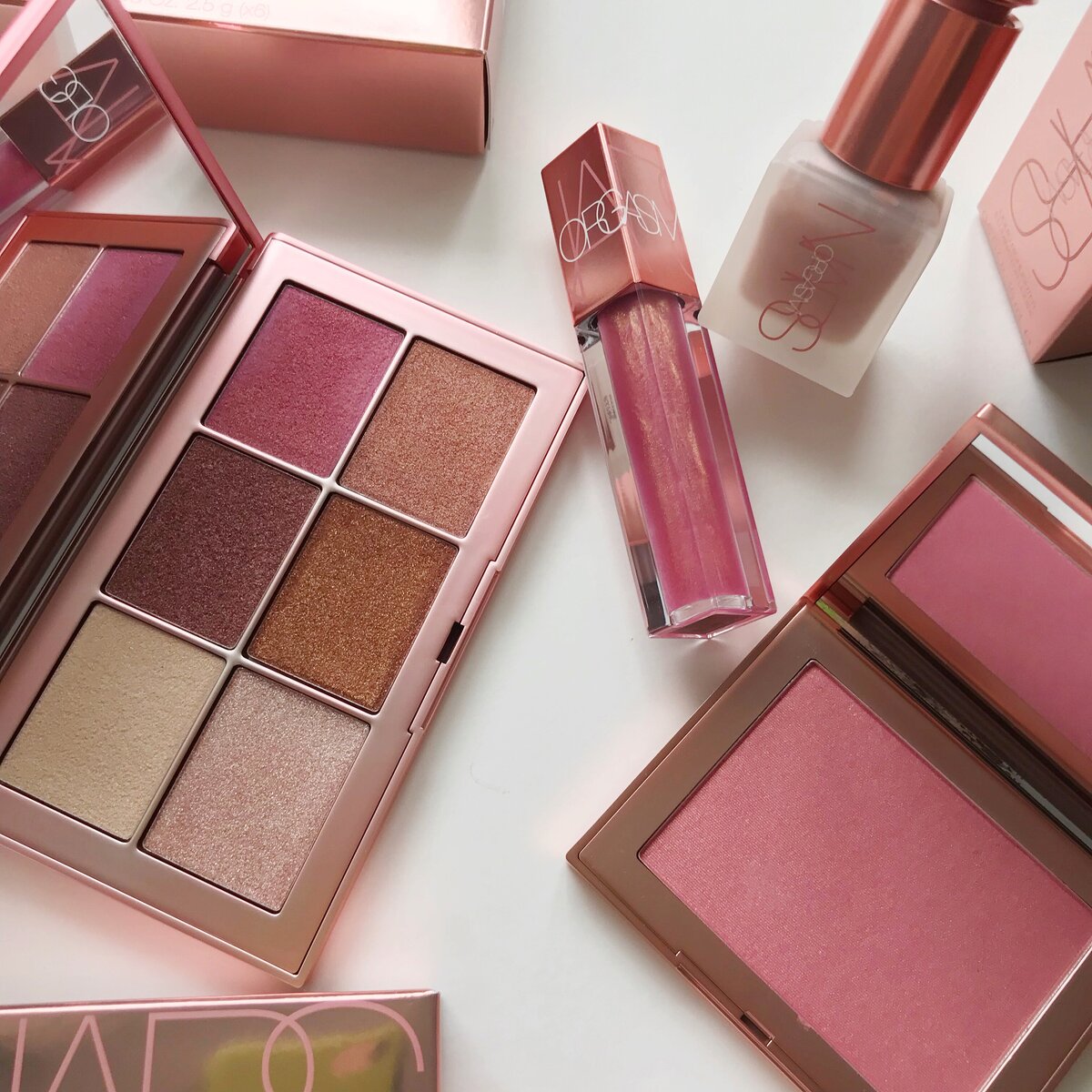 Когда ко мне в руки попала юбилейная коллекция Orgasm от Nars, я сразу поняла, что сниму для вас видео, чтобы показать её во всей красе. Здесь я покажу свотчи (свотч - пример того, как текстура выглядит на коже) и расскажу впечатления об использовании продуктов. Сначала о свотчах: Мои впечатления от использования продуктов: Палетка хайлайтеров Endless Orgasm Это продукт для многофункционального использования. Хайлайтеры можно наносить не только на скулы, но и на губы, глаза и использовать в качестве румян. Подробнее об оттенках (слева направо и сверху вниз). Orgasm Extasy - светло-бежевый с золотистым перламутром. Идеален в качестве тёплого хайлайтера и я уже точно знаю, что первым закончится именно этот оттенок. Deep Orgasm - розовато-лиловый металлик. Точно буду использовать как румяна из-за насыщенного розового пигмента. Super Orgasm - розовый оттенок с золотистым шиммером. На фото смотрится ярким, а на самом деле очень нежный и с большим количеством золотистого шиммера. Буду испо
