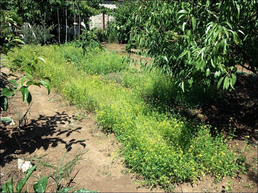 Вернее, она давно пришла, да всё руки не доходили, находились более неотложные дела. А вчера заметил, что на горчице белой полно уже маленьких стручочков с семенами, правда пока ещё маленьких. Сажал я её на месте отплодоносившей клубники, которая вдруг стала усыхать, желтеть и хиреть.Никакие подкормки, опрыскивания и т.п. не помогли. Выкорчевал, а когда высохла - сжёг. После корчёвки засеял грядки горчицей белой. Опять же тонкость небольшая. Подозревая, что часть семян растащат муравьи, посеял несколько гуще, чем следовало. А она вся проросла, в результате посадка получилась загущёной, растения более тощие, чем хотелось бы. Кроме того, ещё одна грядка засеяна фацелией. С заделкой сидератов есть разные мнения, но я имею и своё :) Поскольку их задача - перегнить в почве и тем самым обеспечить питание посаженным позже культурам, то они и должны оказаться в этой почве, а не остаться сверху, превратившись в сухую солому, как считают некоторые. Поэтому я обычно слегка измельчаю зелёную мас