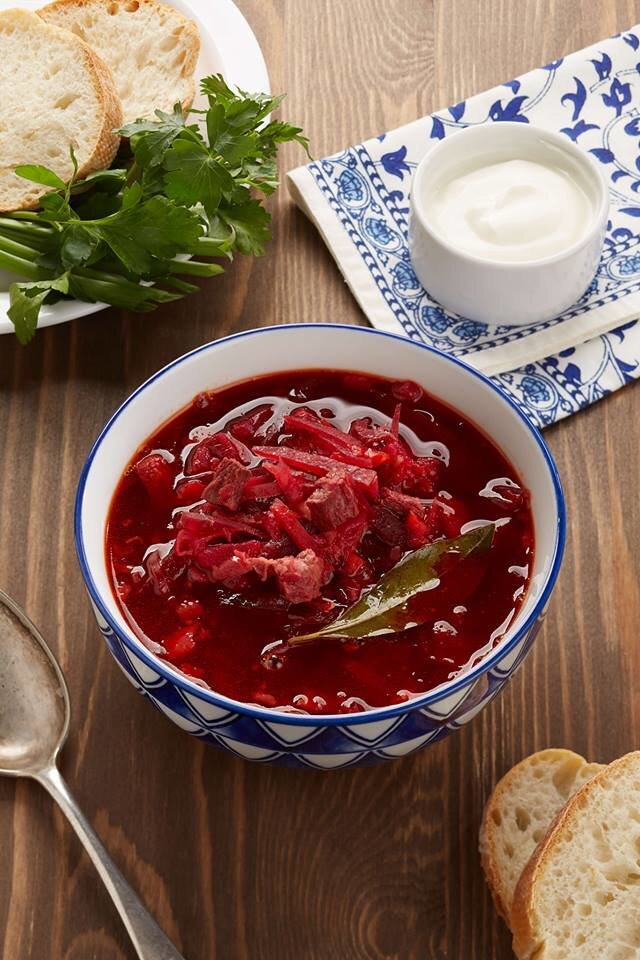 Здравствуйте дорогие читатели, сегодня я вам расскажу как приготовить изумительный борщ. Для приготовления борща нам понадобится. Говядина на косточке - 500г Квашеная капуста - 500г Лук репчатый - 1,2шт Морковь - 2шт Ростительное масло - по вкусу Соль - по вкусу Черный молотый перец - по вкусу Свекла - 3шт Помидоры - 3шт Томатная паста - по желанию Красный болгарский перец - 1шт Картофель - 4шт Черный перец горошком - 1 чайная ложка Лавровый лист - 2шт Пошаговая инструкция приготовления. 1. Мясо опустить в кастрюлю с водой, поставить на огонь и довести до кипения. После закипания снять пену, добавить соль и продолжить варить в течение 40 минут. 2. Квашеную капусту выложить в сковороду, налить растительное масло, пол стакана воды, затем накрыть крышкой и тушить 30 минут на слабом огне. 3. Лук очистить от шелухи, промыть и мелко нарезать. Морковь очистить, промыть и натереть на терке. 4. В чистой сковороде разогреть растительное масло, затем выложить лук, посыпать его солью, черн