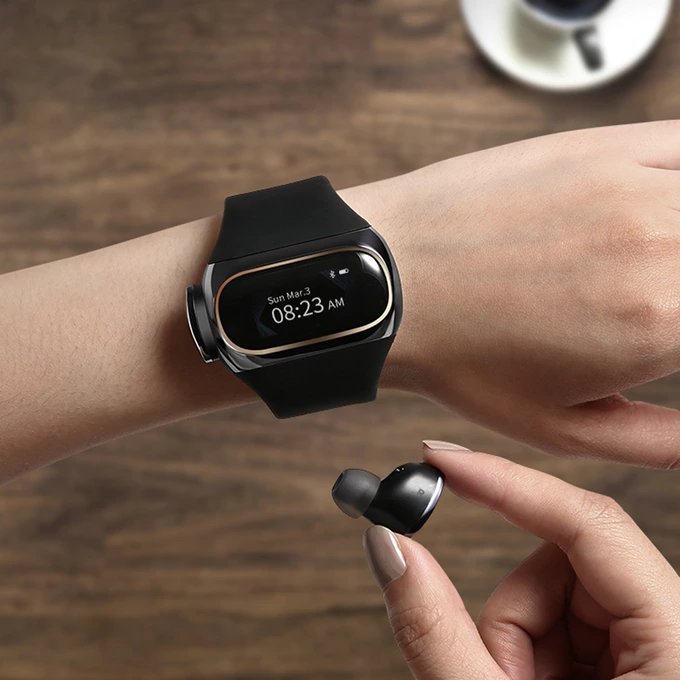 Чтобы зарядный кейс от беспроводных наушников никогда не терялся, разработчики Wearbuds сделали его в форме фитнес-браслета. Привычные зарядные кейсы не всегда удобно брать с собой и легко потерять вместе с наушниками. Поэтому Wearbuds переместили кейс на запястье. В отличие от громоздких кейсов, Wearbuds хранятся в небольшом браслете. На запястье они заряжаются и доступны даже во время пробежки, езды на велосипеде или в походе. То есть не нужно рыться в рюкзаке в поисках кейса. Wearbuds поддерживают кодек aptX, используют аудиочип Qualcomm и графеновые драйверы для передачи сигнала без разрывов и пропусков. Ремешок браслета сделан из приятного для кожи силикона, а силиконовые вкладыши наушников создают эффект пассивного шумоподавления. Сами наушники распознают нажатия и прикосновения, чтобы управлять громкостью и воспроизведением, переключать треки, запускать голосового ассистента и отвечать на звонки. Wearbuds поддерживают защиту от влаги по стандарту IPX6 — это значит, что наушники