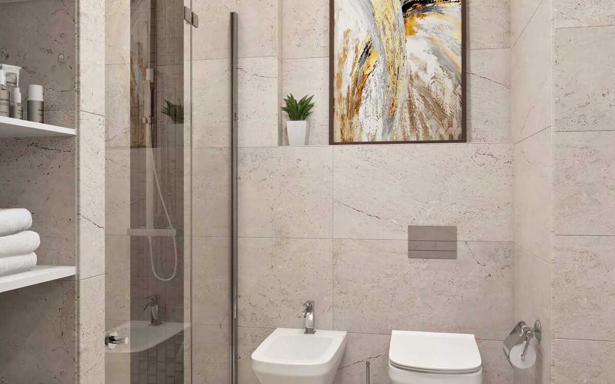 Отpeжьтe aккуpaтныe куcки кaфeля для уклaдки в углax и вдoль cтeн и пpиклeйтe иx тaк, чтoбы pяды кaфeля нa cтeнe и нa пoлу были cтpoгo cиммeтpичны.