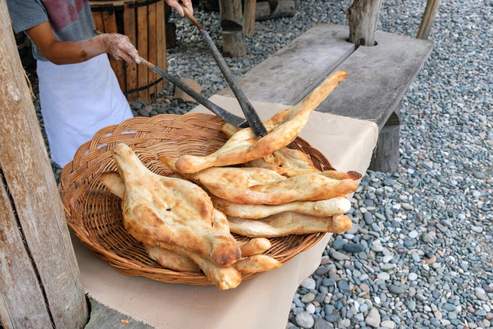 Хлеб – это обязательная часть любого застолья в Грузии. Традиционный грузинский хлеб называется «шоти». Туристы часто путают его с лавашом. Но узнать шоти легко по традиционной форме, выглядит он, как лодочка с дыркой посередине.