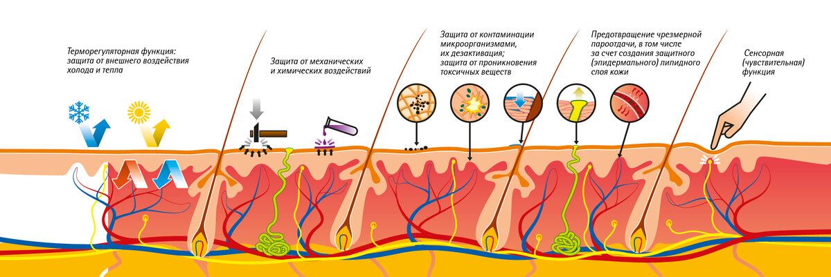 Основные функции кожи следующие.