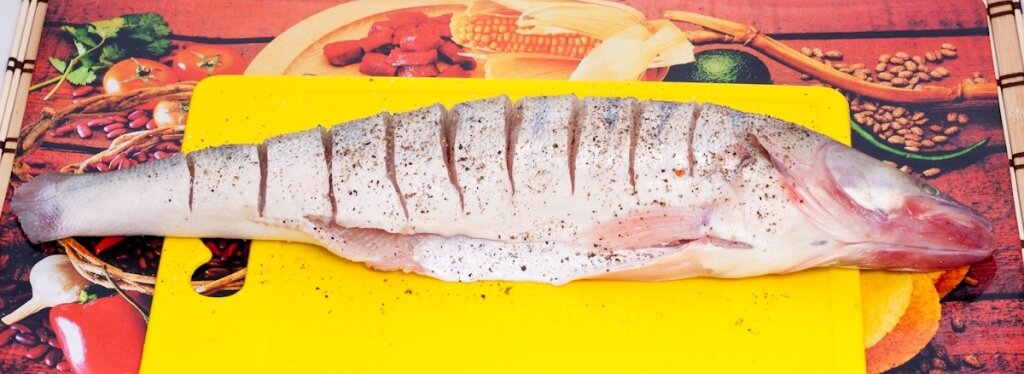Для приготовления необходимы: Заходите на мой сайт и читайте ещё больше новых рецептов Способ приготовления: Рыбу почистить от чешуи, внутренностей, плавников, промыть. Выполнить на судаке поперечные надрезы. Лук почистить и порезать кольцами, лимон помыть и порезать кружочками. Часть лука и лимона положить внутрь рыбы. Оставшиеся кольца лука вставить в надрезы. В миске смешать майонез и сметану, перемешать и обмазать этим соусом рыбу. Дать рыбе постоять минут 20-30. Фольгу смазать маслом, выложить судака и отправить в заранее разогретую до 220 градусов духовку примерно на 30 минут. После этого достать рыбу, раскрыть фольгу, посыпать тертым сыром. Запекать ещё 10 минут, чтобы расплавился сыр. Подавать рыбу, запеченную в духовке в фольге целиком, украсив веточками петрушки. ПРИЯТНОГО АППЕТИТА! Если Вам понравилась статья, ставьте лайк и подписывайтесь на мой канал в Яндекс.Дзен!
