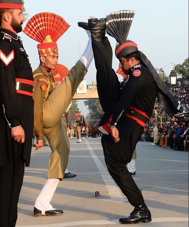 Военная форма это не всегда однотонное и скучное облачение, возлагающее на плечи военнослужащего лишь обязанности и ответственность. Вашему вниманию представляются самые красочные облачения военных со всего мира. ИНДИЯ И ПАКИСТАН: «Церемония Вечерней Зари» — это сложный высокохудожественный ритуал, исполняемый пакистанскими и индийскими пограничниками на пропускном пункте в городе Амритсар. Проходит ежедневно перед заходом солнца. ВАТИКАН: У Ватикана нет своей армии. Папу Римского охраняет корпус Швейцарской гвардии, чья форма не менялась уже 400 лет. КОТ д'ИВУАР: ЮЖНАЯ КОРЕЯ: Королевская гвардия Южной Кореи. ГРЕЦИЯ: Вот так выглядят греческие эвзоны, марширующие у могилы Неизвестного солдата в Афинах. ИНДИЯ: Парадная форма индийских пограничников во время парада по случаю Дня Республики. ТАИЛАНД: На фото представлена гвардия Таиланда. ФИДЖИ: Это почетный караул президента Фиджи.