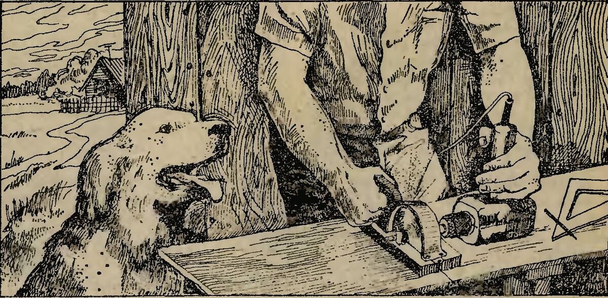 Приветствую Вас дорогие друзья! Сегодня я познакомлю Вас со статьей 1983 года в которой мы узнаем о том как просто сделать дисковую пилу из обычной дрели. Статья оцифрована и отредактирована под платформу Яндекс Дзен. Приятного Вам чтения. Дрель в нашем устройстве — съемный привод. Сама же пила — несложное приспособление (см. рис.), собранное на своем основании. Закончив работу, вы отсоединяете его от дрели и убираете с верстака, чтоб не мешал дальнейшей работе. Диск пилы насаживается на стальной стержень-шпиндель и плотно зажимается двумя гайками с шайбами. Для этого на стержне (его длина 150 мм, а диаметр 8 мм) нарезается резьба на длину 60 мм. На оба конца шпинделя надеты втулки-подшипники. Они выполнены из латуни, их внутренний диаметр на 0,3—0,4 мм больше диаметра шпинделя. Специальными хомутами подшипники крепятся к основанию. Основание должно быть массивным. Его лучше сделать, из дубовой или буковой доски, но подойдет и фанера толщиной 12 мм. Вдоль продольно