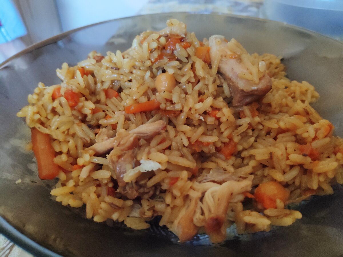 Мой дед всю жизнь прожил в Узбекистане и он готовит обалденно вкусный узбекский плов. Когда я приезжаю к нему в гости (а это случается очень редко, к сожалению), я всегда прошу приготовить мне плов. Спешу поделиться с вами рецептом настоящего узбекского плова, правда из курицы.