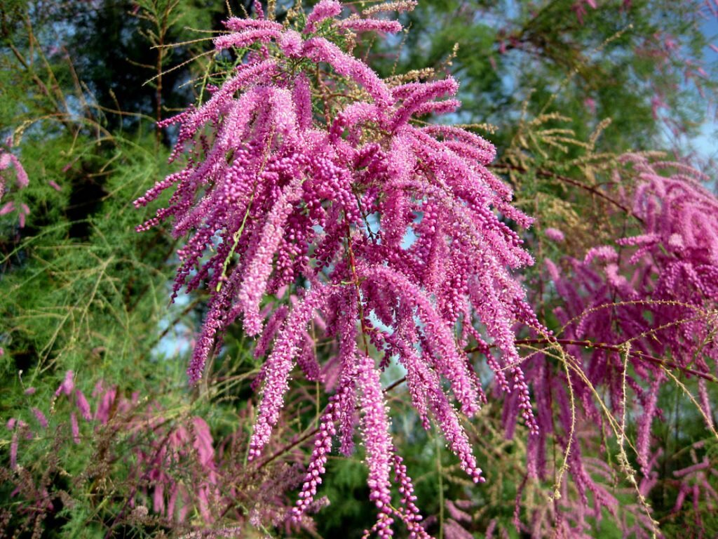 Этот кустарник станет настоящим украшением сада, все его изящные ветви покрыты мелкими розовыми бутонами, поэтому издалека даже может показаться что у растения розовая листва. Тамарикс неприхотлив будет расти на любой почве, а цветение его продлится все лето и начало осени. К небольшим морозам устойчив, но в северных регионах рекомендуется укрывать его на зиму. Кариоптерис в народе еще называют синим туманом, так как он очень обильно цветет синего оттенка соцветиями. Зацветет он ближе к осени, тогда, когда почти все остальные растения уже отцвели. Кариоптерис неприхотлив и любит солнечные места, примерно раз в месяц его подкармливать для хорошего роста и цветения. Спирея имеет большое количество сортов и в зависимости от сорта отличается формой соцветий. Высота растения тоже зависит от сорта, есть низкорослые, а есть и высокорослые, способные вырастать более 2,5 метров. Все сорта цветут очень обильно, напоминая пенящийся водопад. Эффектный кустарник, украсит ваш сад своим цве