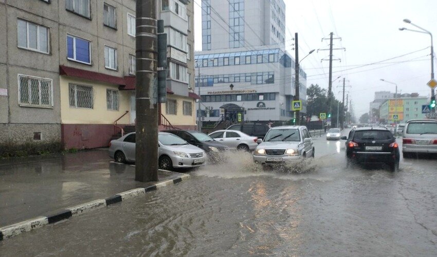 По улицам Южно-Сахалинска прошелся масштабный, но скоротечный ливень. За несколько минут дороги города превратились в ручьи и даже реки. Читатели skr.su поделились фото и видео ситуации в городе. На улицах Амурская, Чехова, Комсомольская и других автомобили, рассекая по дороге, оставляют за собой шлейф брызг, которые заливают прохожих. Больше всего не повезло сахалинцам, которые, увидев чистое небо с утра, вышли на улицы в светлых штанах или легких босоножках. Им пришлось скакать по лужам, набирая воду в обувь. Жительница областного центра Анастасия как раз поделилась тем, как ей пришлось прыгать до отделения МФЦ. Заботливые островитяне накидали на одной из улиц пару дощечек и плит, превратив передвижение по городу в игру-платформер. — Пришла на работу, посмотрела в окно и в ужасе вспомнила, что не закрыла окна в квартире. Сижу и жду звонка от соседей в предвкушении хорошего втыка, — поделилась жительница Южно-Сахалинска Екатерина. Прогноз погоды на выходные и начало следующей недел
