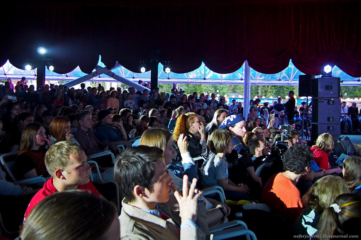 Зрители сидели, стояли, лежали между рядами, свисали гроздьями с парапета, все хотели посмотреть грандиозное шоу. Барабанщики ASKA GUMI уже выступали на фестивале J-FEST, народ их очень любит. Я впервые на этом шоу, затаилась в предвкушении.