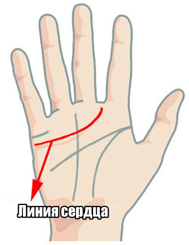 Линия сердца (линия любви), иллюстрирует степень чувствительности, с которой вы подходите к миру, а также рассказывает историю вашей личной эмоциональной истории. Считается, что лучшей линией сердца является прямая, без кисточек и разрывов линия. Если это так, то это указывает на то, что ребенок получил полную любовь своей матери от рождения. Если линия прямая, то она показывает человека, который действует в соответствии с разумом и пренебрегает своими эмоциями. Большая Линия Сердца Люди, имеющие линию сердца, которая является довольно прямой и наклоняется к указательному пальцу (Юпитер), обладают «большим» и добрым сердцем. Они наслаждаются компанией других и радуют своим присутствием окружающих. Такие люди утешает других в моменты переживаний. Еще одной характеристикой этого человека является то, что он предан своим любовникам. Люди с большой линией сердца умеют превратить даже самые сложные жизненные моменты в нечто позитивное. Ветви в конце линии сердца Когда в конце линии серд