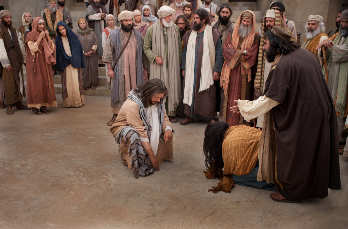 « Когда же продолжали спрашивать Его, Он, восклонившись, сказал им: кто из вас без греха, первый брось на неё камень.