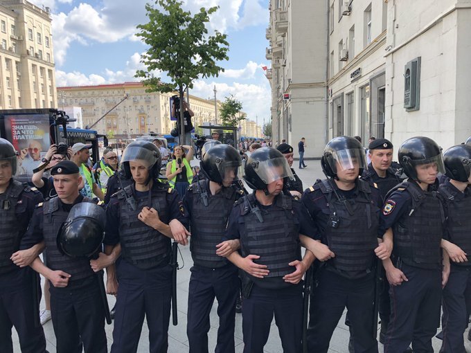 В Москве перед началом несогласованной протестной акции за допуск на выборы в Мосгордуму независимых депутатов начали задерживать прохожих, оказавшихся на улице Тверская и по близости от мэрии. По данным "МБХ-медиа" в автозаках уже находятся более 70 человек. Часть из них действительно оказались на Тверской, чтобы принять участие в митинге, но также среди них оказались и случайные люди, в том числе пенсионерки, которые пытались убедить росгвардейцев, что не участвовали в акции. К началу акции полиция и Росгвардия пригнали в центр Москвы более десяти автобусов и автозаков для задержанных, улицы и переулки перекрывают заборами. Тверскую закрыли для пешеходов. Также после обысков, но перед началом митинга начали задерживать оппозиционных кандидатов. Так, Дмитрия Гудкова задержали на въезде в Москву, также задержали Юлию Галямину. В Москве сегодня оппозиция планировала провести митинг за допуск на выборы независимых депутатов Мосгордумы, но городские власти и правоохранительные орган