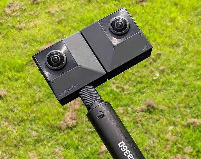 До этого мы рассматривали Insta 360 EVO в сложенном состоянии. Если же раскрыть её до характерного щелчка, то открываются новые возможности – стереоскопическая съемка или 3D. Конечно, ролик будет уже 180 градусов, но с объёмом 3 измерений.