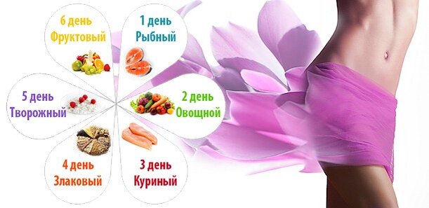Данная диета состоит из 6 лепестков, желательно заранее вырезать цветок на котором будут 6 лепестков и каждый лепесток будет подписан определённым меню, после каждого дня по одному лепестку нужно будет отрывать для наглядности и понимания сколько дней осталось до завершения и сбросу лишних килограмм. Важно каждый лепесток отрывать по часовой стрелке, так как последовательность дней принципиальный