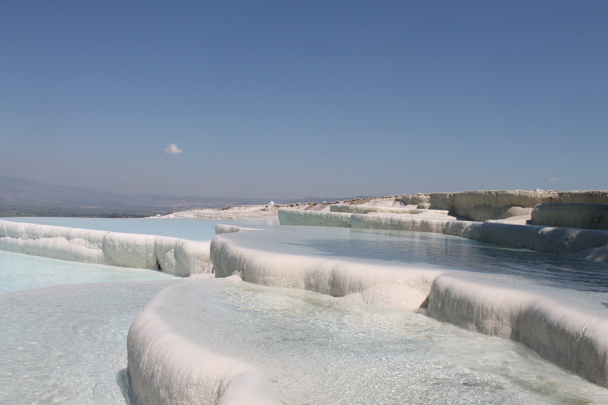 Ехать на курорт просто лечиться – скучно. Ехать лежать на море тоже скучно. Я лечился в знаменитых Карловых Варах, где уже через неделю ты перестаешь воспринимать все эти архитектурные красоты. Через две недели ходишь по Карловым Варам как по своему городу, смотря себе под ноги. Дико хочется попробовать что-то совсем необычное, не постное. Один мой товарищ недавно был в Турции, ездил по разным городам, искал новых ощущений. Мы переписывались с ним в whatssap и он сказал, что хочет увидеть что-то впечатляющее, при этом еще и оздоровиться. И вот он присылает мне фотки совершенно необычного для меня места: Я никогда не слышал о нем, хотя туда ездят люди со всех континентов. Эти природные бассейны, между прочим, наполняются термальной водой. В некоторых зонах можно купаться. Смотреть на них можно днями. Судя по рассказу моего товарища, они совершенно по-разному воспринимаются ранним утром и поздним вечером. Согласитесь, селфи в таком месте значительно освежит вашу ленту в социальных сетях