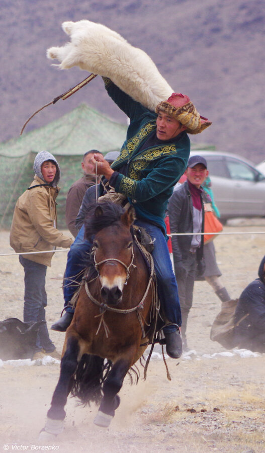 Часть 1 Часть 2 Часть 4 Еще одна конная игра, распространённая на Алтае по обе стороны российско-монгольской границы - это кокпар или в просторечии - "козлодрание". Игра заключается в борьбе всадников за тушу козла, может проводиться как один на один, так и команда на команду. Кокпар - название казахское, алтайцы называют игру кок-бору, а в программе монгольского фестиваля Беркутчи она значилась как кокбар. Про фестиваль Беркутчи можно узнать на этом канале в статье Фестиваль Беркутчи, что это такое? Из того что мне доводилось видеть, я сделал вывод, что в российской части Алтая более распространён командный вариант игры, а в Западной Монголии - индивидуальный. Командная игра в той или иной степени соответствует официальным правилам, которые были приняты в 1996 году (до этого единых правил игры в кокпар не существовало). Но эта часть будет посвящена варианту "один на один", принятому у монгольских казахов. На самом деле, единых правил не существует до сих пор, например, Казахстан в