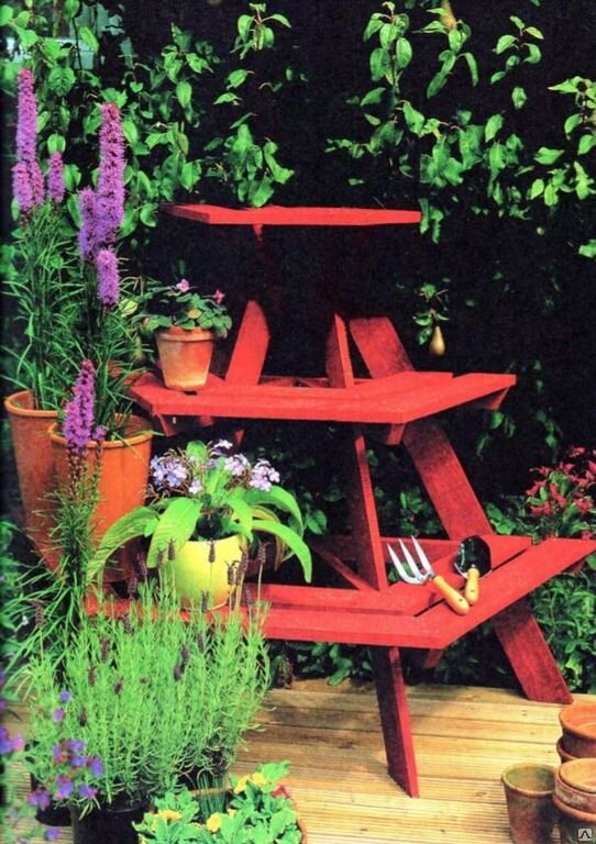 Этажерка для цветов- это прекрасная возможность украсить любой уголок на вашей даче. Ее можно перенести в дом, в сад, в зону отдыха. Идеально иметь на даче несколько таких этажерок одинаковых или разных по размеру. На этажерке вы можете менять цветной рисунок хоть каждую неделю. Этажерки можно переставлять в зону отдыха, если ждете гостей, затем разнести их по саду или поставить у входной зоны или ворот.Строительство этажерки займет немного времени. Чтобы изготовить этажерку под цветы высотой 1,1 метра и шириной 1,5 метра нам потребуется: - 7 штук 3-х метровых сосновых досок, размерами 100 х 20 мм; - 6 штук 2-х метровых досок, размерами 50 х 30 мм (опоры полок); -оцинкованные шурупы 100 х 38 мм и 50 х 50 мм. Внимательно изучите наш рисунок и выпишите все размеры деталей, пронумеровав их- ЭТАЖЕРКА ДЛЯ ЦВЕТОВ Будьте с нами и мы познакомим вас с нашими поделками