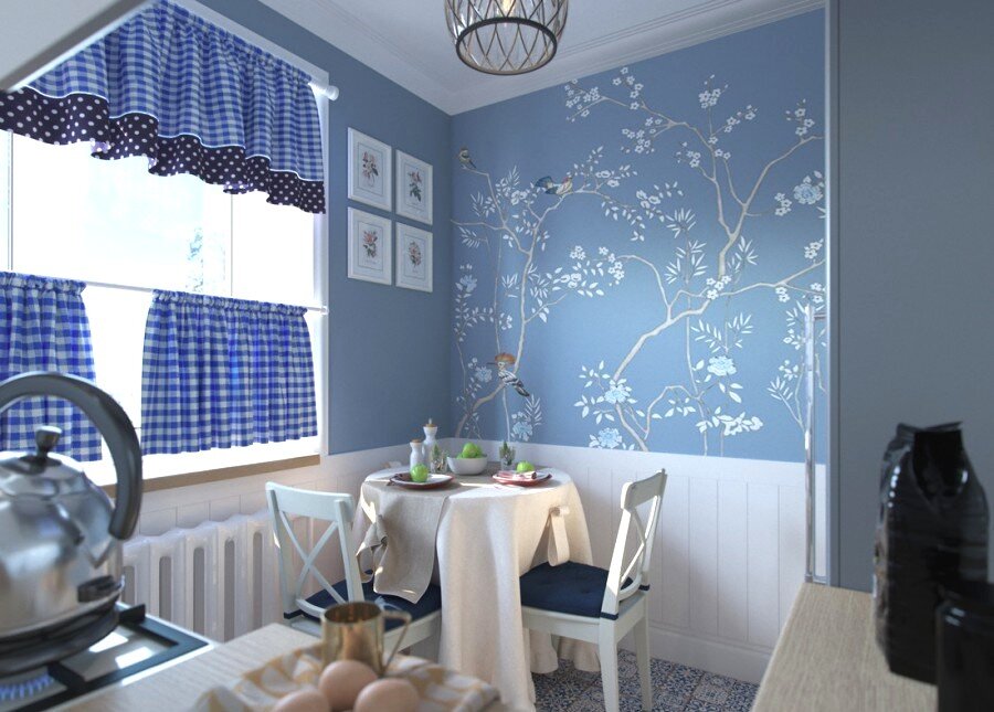 Стиль прованс постепенно сдает позиции, уступая ар-нуво и ар-деко, но в малогабаритных квартирах (читай — в хрущёвках!) его всё ещё продолжают использовать. Объяснение банальное: он светлый, лёгкий, поэтому зрительно расширяет помещение 4-6 кв. м. Вдобавок, сочетание натуральных чистых цветов и тёплых оттенков делает помещение уютнее, что достаточно важно в ритме жизни большого города. Каким должен быть правильный прованс? Ниже мы даём ответы на распространённые вопросы. Цветовая гамма Для кухни в стиле прованс обстановка обойдётся довольно бюджетно: практически у каждого производителя мебели есть кухонные гарнитуры требуемых цветов — белого, бежевого, кремового, голубого, даже бледно-лавандового. Если сильно постараться, то можно найти мебельные фасады бирюзового, мятного и сиреневого оттенков. Столешница нужна белого цвета либо из натурального дерева. Не бойтесь выбрать матовый белый искусственный камень: он легко оттирается. Но текстура с разводами точно не для прованса и эргономи