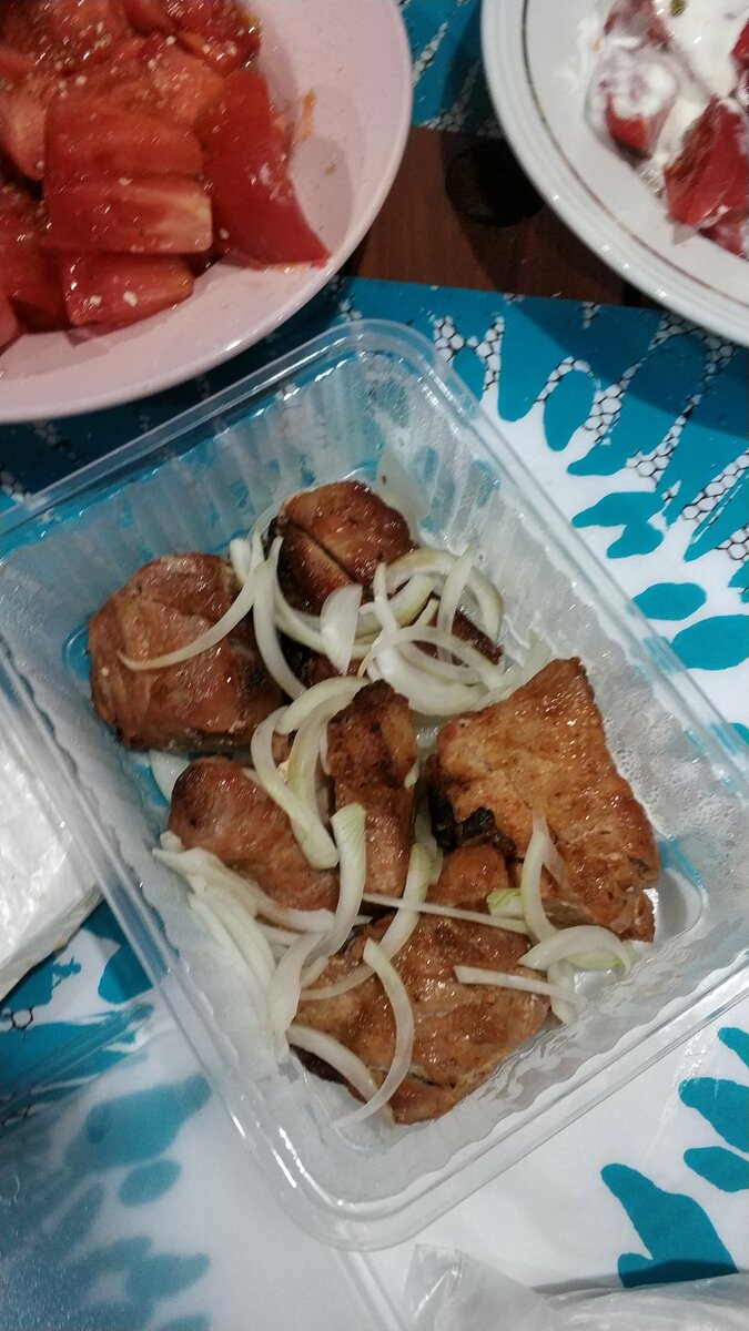 Два дня назад мы были в Ейске на Азовском море. Городок небольшой, но уютный. Есть несколько отличных парков. В один из них, а именно парк им. Поддубного мы и отправились вечером. Хотели погулять с детьми, ну а кто-то жаждал покататься на аттракционах... Миссию выполнили😊. Нагулялись, накатались и естественно захотели есть... В кафе идти не хотелось. Единственными желаниями были есть и спать... Поэтому мы решили заказать шашлык на вынос. Прямо в парке. Благо киосков с шаурмой и шашлыком здесь очень много. А цены везде одинаковые. Муж, как всегда выбрал мясо... Шашлык из свиной шеи. Получилось почти 350 грамм - на 410 рублей. Мясо было неплохое, сочное. Но без особых восторгов. За 100 грамм шашлыка - 120 рублей. По - моему недешево... Дети решили взять шаурму. Младшая с курицей за 120 рублей. Старшая со свининой за 150 рублей. Обе были голодными, поэтому даже сфотографировать не успела... По виду абсолютно идентичные. Достаточно большие. Ни старшая, ни младшая полностью с ними не справ