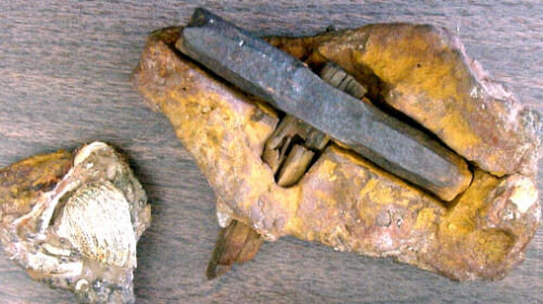 Эмма показала находку супругу Максу. Он удивился не меньше чем она. Они увидели обычный молоток, длина которого была сантиметров 15. Он был насажен на сломанную ручку. Самое удивительное в этой истории было то, что молоток врос в известняк.