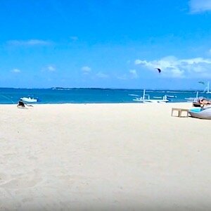 Пляж Сегара Аю (Pantai Segara Ayu) Пляж Сегара Аю привлекает множество посетителей широкой полосой мягкого белого песка и спокойной обстановкой с различными пляжными развлечениями. Поверхность: мягкий белый песок, пологий вход. Посещение пляжа: бесплатное. Аренда шезлонга: платная. Температура воды: зимой +28, весной +29, летом +27, осенью +27. Развлечения: Еда: кафе, киоски. Отдых с детьми: подходит. Парковка: платная. Пляж находится в 8 км от г. Денпасар, рядом с деревней Пекраман Интаран. Добраться сюда из Денпасара можно на такси (10 EUR) за 15 мин., на арендованном скутере или мотоцикле (от 9 EUR). Из аэропорта Нгура Рай ехать 20-30 минут. Парковка для мотоциклов – 2,8 EUR, для автомобилей – 7,1 EUR. Спокойное чистое побережье с белым песком окружено посадками деревьев. Пляж Pantai Segara Ayu хорошо оборудован: сдаются в аренду лежаки и зонты (по 3,14 EUR), есть туалеты, раздевалки и душевые кабины. Разрешается отдыхать на своём полотенце. На пляже Сегара Аю можно заняться лёгкой
