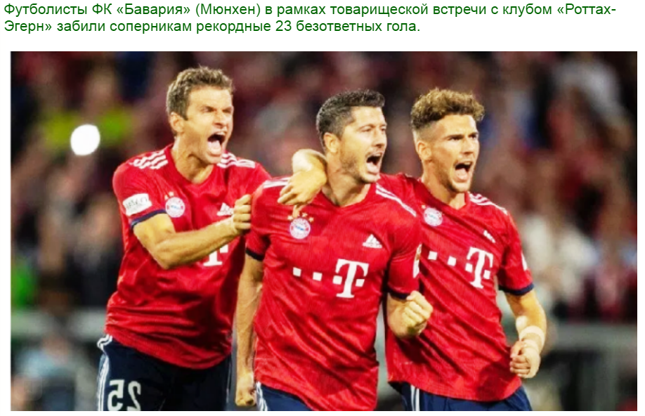 Источник: Новостной Терминал Товарищеская встреча состоялась между немецким клубом высшего эшелона «Баварией» и любительским ФК «Роттах-Эгерн», которая завершился разгромным проигрышем последних с результатом 23:0.