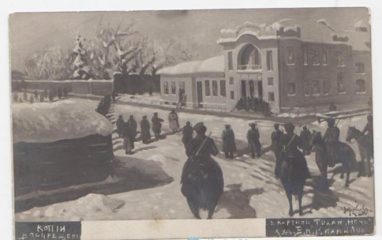 Однако в 1905-1907 годах под впечатлением революционных событий он создал несколько жанровых картин. Две из них сразу были занесены жандармским управлением в черные списки. Это «Тихая ночь», хранящаяся в Самарском художественном музее, и «Перед рассветом». Первая показывала, как конные жандармы окружают Пушкинский дом (позднее клуб Революции 1905 года), в котором проводит собрание Самарского Совета депутатов трудящихся большевик Вилонов, вторая — расправу над революционерами.