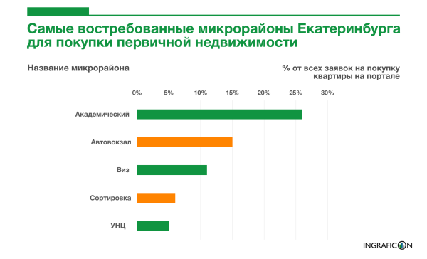 Рейтинг микрорайонов по востребованности среди покупателей первичной недвижимости портал INGRAFICON определяет общим количеством заявок, отправленных на наш ресурс для приобретения квартир в конкретном микрорайоне. Для составления рейтинга мы ориентируемся исключительно на интерес пользователей портала INGRAFICON.