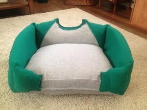 Тем, у кого есть кот или собака часто хочется сшить удобную лежанку для своего питомца. В магазинах часто такие товары дороги и не всегда подходят по размеру. Для того чтобы сделать уютную лежанку понадобятся: Толстовку лучше взять из прочной ткани, тогда лежанка прослужит долго. Зашиваем ворот и пришиваем рукава от подмышки к боковой стороне. Там, где был ворот, отступите такую же ширину рукава и прошейте нитками вдоль ткани. Набиваем рукава синтепоном, вкладываем в толстовку подушку и подшиваем края, чтобы она не выпала. Сшиваем между собой рукава толстовки и прикрываем сверху тканью, чтобы они не разошлись. Ткань нужно пришить. Если есть навыки работы с фанерой или деревом можно сделать домик по эскизу. Просто собираем коробку из готовых листов на саморезы. Внутрь укладываем подушку. Домик готов. Если хочется сделать мягкую лежанку по всем правилам, придется запастись терпением. В сети много выкроек даже самой сложной формы, поэтому просто распечатываем понравившийся вариант и шьем,