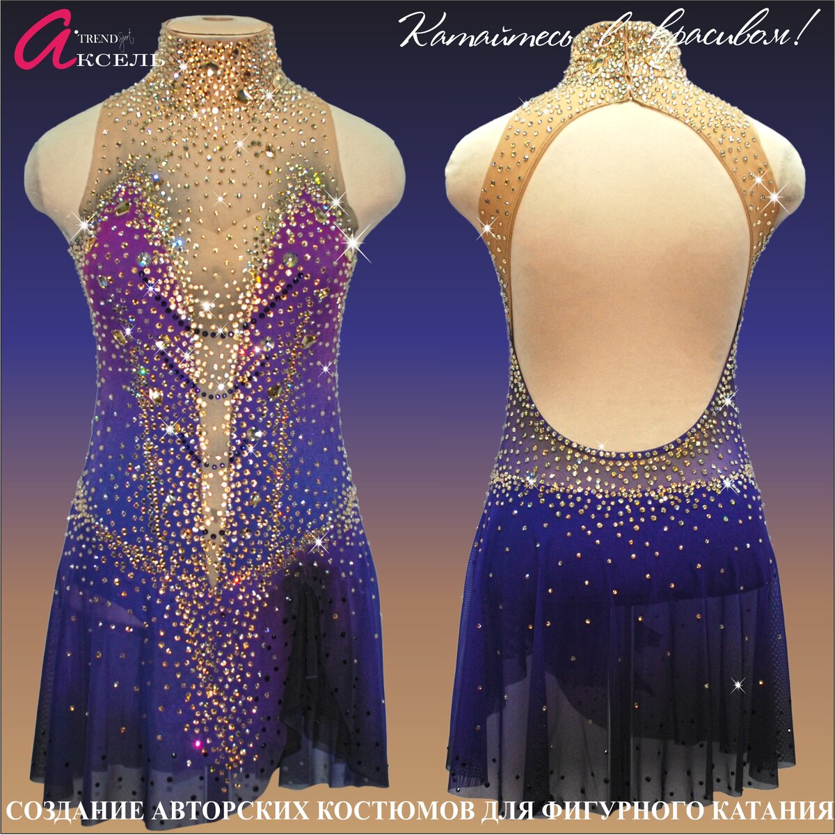 Ride in beautiful!!! Аксель это -Эксклюзивные дизайны Эксклюзивные дизайны и цвета позволят вашему спортсмену выгодно отличаться на льду и в зале от других спортсменов. Все серийные модели до запуска в серию тестируются в "боевых" условиях на льду и в зале. В ателье Аксель можно заказать пошив платьев для фигурного катания и пошив костюмов для фигурного катания. Аксель это - Профессионализм Профессиональные дизайнеры и портные. Качественный пошив. В
