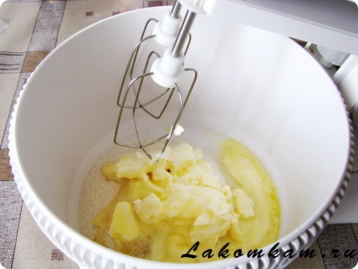 Затем вбить яйца и перемешивать пока не растворится сахар до однородной пенной массы.