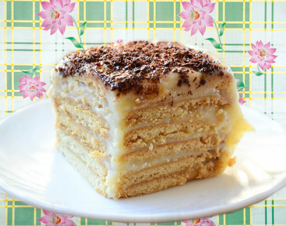 Очередной тортик из печенья, который выручает, когда не ждешь гостей. Ингредиенты: - 2 пачки печенья (топленое молоко); - 200 г сливочного масла; - 400 г сгущённого молока (можно с карамелью); - 200 мл молока. Для глазури: - 1 плитка шоколада; - 100 г сливок или 50 мл молока; - 30 г сливочного масла. Для приготовления нужно взять сливочное масло комнатной t, хорошенько взбить миксером или размять вилкой. Далее нужно добавить сгущённое молоко комнатной t и взбить до однородности. Каждую печеньку обмакнуть в молоко и выложить в форму с высокими краями. Каждый слой смазать кремом и так до последнего слоя. Чтобы приготовить глазурь нужно шоколад поломать на кусочки и добавить сливки. Всё это растопить на небольшом огне. Туда же отправить сливочное масло и дать немножко остыть. Торт залить глазурью и оставить постоять. Готовность торта можно проверить вилкой, если вилка отлично протыкает торт значит пора пить чай! Приятного аппетита друзья!