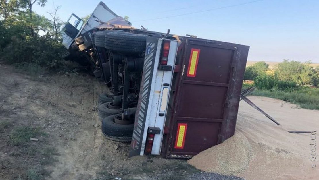 На автодороге «Одесса – Рени» перевернулся многотонный зерновоз