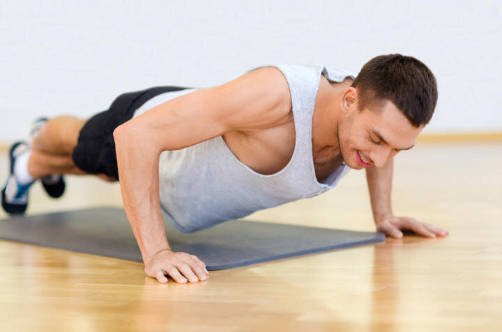 Здравствуйте. В этой статье представлена тренировка среднего уровня сложности направленную на сжигание жира, увеличение рельефа мышц и повышение выносливости. Упражнение Конькобежец Поставьте ноги шире плеч и смещайтесь влево и вправо поочередно. Выполняем 45 секунд. Это достаточно простое движение которое включает в работу большинство мышечных групп, и позволит размяться перед более сложными движениями. Между упражнениями старайтесь отдыхать не более 30 секунд и со временем сводите эту паузу к минимуму. Отжимания с подтягиванием колен Займите позицию упор лежа и на вдох опуститесь вниз, на выдохе вернитесь в исходную позицию и поднимите колено к корпусу. Упражнение выполняется 30 секунд. В этом упражнении вы отлично включите в работу грудные мышцы, трицепс и пресс. Выпрямление руки и ноги в упоре Встаньте в упор и на выдох выпрямить руку и противоположную ногу, на вдох вернитесь в исходную позицию. Выполняем 30 секунд. Jumping Jack В прыжке поставьте ноги шире плеч и сведите руки