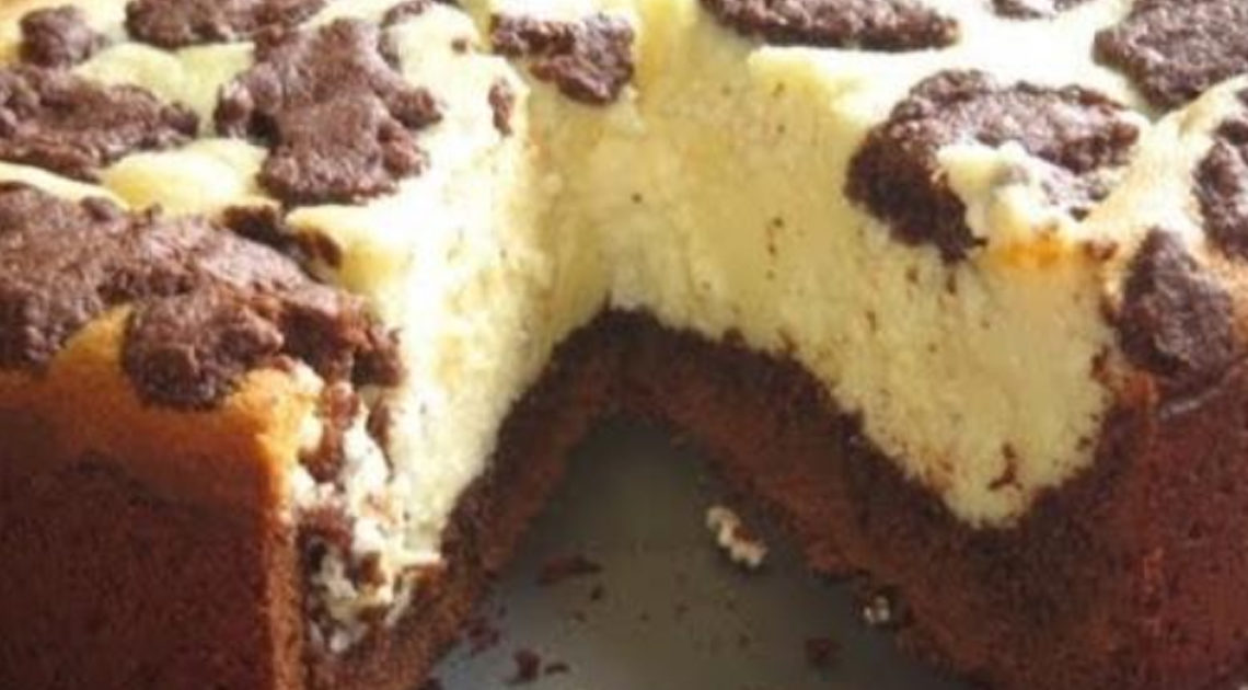 - Из оставшегося количества шоколадного теста сформируйте небольшие пятнышки, распределите их по поверхности торта.